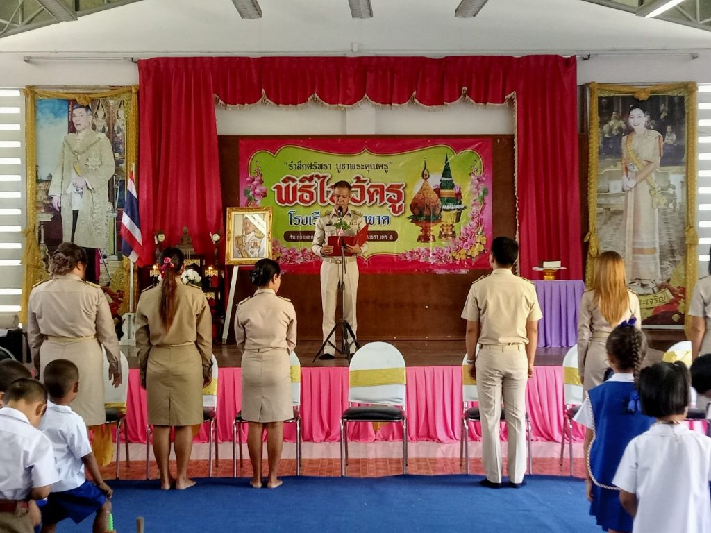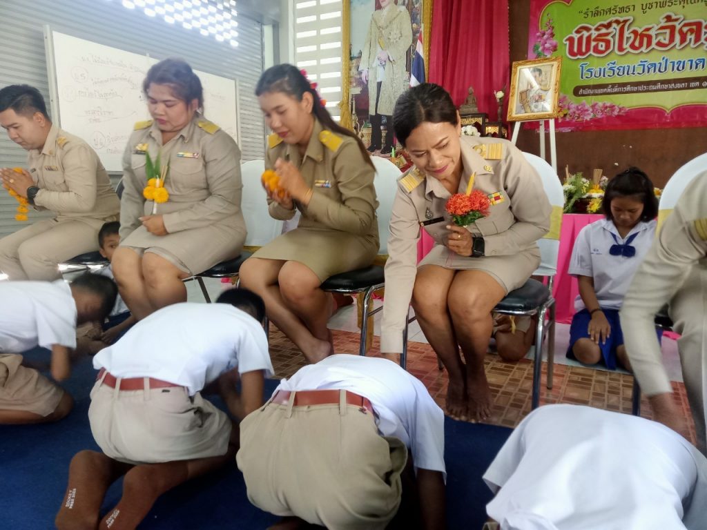 กิจกรรมวันไหว้ครู 8 มิ.ย.,2566 adminใส่ความเห็น วันที่ ๘ มิถุนายน ๒๕๖๖ โรงเรียนวัดป่าขาด นำโดย นายโอกาส บุญรอง ผู้อำนวยการโรงเรียนวัดป่าขาดพร้อมด้วยคณะครูบุคลากรทางการศึกษา ร่วมกันจัดกิจกรรมวันไหว้ครูเพื่อให้นักเรียน ในระดับชั้นอนุบาล๒-ชั้นประ ณศึกษาปีที่: ได้แสดงออกถึงความกตัญญูกดเวทีต่อคุณครูผู้มีพระคุณในการประสิทธิประสาทวิชาให้ และเพื่อสร้างความสัมพันธ์อันดีระหว่างครูและนักเรียนโรงเรียนวัดป่าขาด รวมทั้งเป็นการการสืบสานประเพณีและวัฒธรรมอันดีงามให้สืบทอดต่อไป