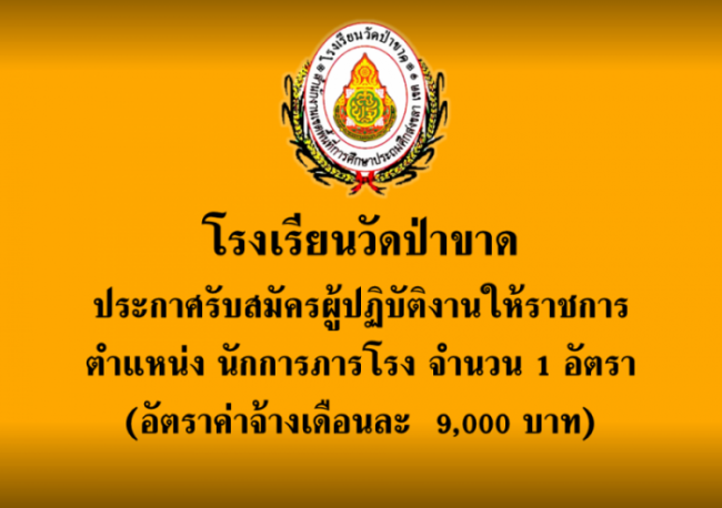 รับสมัครคัดเลือกบุคคลผู้ปฏิบัติงานให้ราชการ ตำแหน่งนักการภารโรง ปีงบประมาณ พ.ศ. 2568 4 ต.ค.,2567 adminใส่ความเห็น โรงเรียนวัดป่าขาด ประกาศรับสมัครคัดเลือกบุคคลผู้ปฏิบัติงานให้ราชการ ตำแหน่งนักการภารโรง ปีงบประมาณ พ.ศ. 2568 ผู้ที่มีคุณสมบัติและประสงค์จะสมัครเข้ารับการคัดเลือก สามารถขอรับเอกสารและยื่นใบสมัครได้ที่ โรงเรียนวัดป่าขาด อำเภอสิงหนคร จังหวัดสงขลา ระหว่างวันที่ 4 ตุลาคม 2567 ถึงวันที่ 8 ตุลาคม 2567 เวลา 08.30 น. ถึง 16.30 น. ในวัน เวลาและสถานที่ราชการ (ไม่เว้นวันหยุดราชการ)