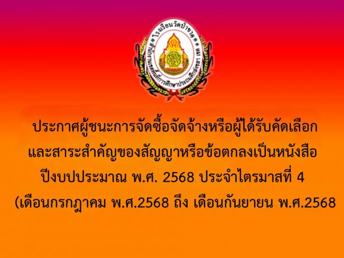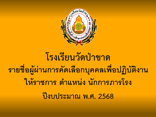 คลิปวีดิโอรายงานผลการปฎิบัติงาน ผอ.โรงเรียนวัดป่าขาด วิดีโอกิจกรรมโรงเรียน วิดีโอเพิ่มเติม…. ข่าวประชาสัมพันธ์ ข่าวประชาสัมพันธ์กิจกรรมจัดซื้อจัดจ้าง ประกาศผู้ชนะการจัดซื้อจัดจ้างหรือผู้ได้รับคัดเลือกและสาระสำคัญของสัญญาหรือข้อตกลงเป็นหนังสือ ปีงบปประมาณ พ.ศ. 2568 ประจำไตรมาสที่ 4 (เดือนกรกฎาคม พ.ศ.2568 ถึง เดือนกันยายน พ.ศ.2568admin14 ตุลาคม 2568ข่าว, จัดซื้อจัดจ้างRead Moreประเมินผลการพัฒนางานตามข้อตกลง ( PA) ของข้าราชการครูและบุคลากรทางการศึกษา ตำแหน่งครู โรงเรียนวัดป่าขาดadmin12 กันยายน 2568กิจกรรม, ข่าว &n…Read Moreโครงการจัดเวทีประชาคมหมู่บ้านadmin10 กันยายน 2568กิจกรรม, ข่าว วันที่ 9 กันยายน 2568 น…Read Moreกิจกรรมรวมพลังสร้างอนาคตทางการมองเห็นที่ดีแก่เด็กสงขลา “ClearerVision for Songkhla Kids” ปีที่ 2 กิจกรรมรวมพลังสร้างอนาคตทางการมองเห็นที่ดีแก่เด็กสงขลาadmin9 กันยายน 2568กิจกรรม, ข่าว วันที่ 8 กันยายน …Read Moreรับทุนการศึกษามูลนิธิมิตรภาพสามัคคี (ท่งเซียเซี่ยงตั้ง) หาดใหญ่ ประจำปี 2568 (ทุนทั่วไป)admin9 กันยายน 2568กิจกรรม, ข่าว วันที่ 6 กันยายน 2568 นายโอภาส บุญรอง ผู้อำนวยการโรงเรียนว…Read Moreรับมอบรถจักรยานจากนายกเหล่ากาชาดจังหวัดสงขลาadmin9 กันยายน 2568กิจกรรม, ข่าว วันที่ 4 กันยายน 2568 นายโอภาส บุญรอง ผู้อำน…Read More Previous1234…18Next ประเมินผลการพัฒนางานตามข้อตกลง ( PA) ของข้าราชการครูและบุคลากรทางการศึกษา ตำแหน่งครู โรงเรียนวัดป่าขาดadmin12 กันยายน 2568กิจกรรม, ข่าว &n…Read Moreโครงการจัดเวทีประชาคมหมู่บ้านadmin10 กันยายน 2568กิจกรรม, ข่าว วันที่ 9 กันยายน 2568 น…Read Moreกิจกรรมรวมพลังสร้างอนาคตทางการมองเห็นที่ดีแก่เด็กสงขลา “ClearerVision for Songkhla Kids” ปีที่ 2 กิจกรรมรวมพลังสร้างอนาคตทางการมองเห็นที่ดีแก่เด็กสงขลาadmin9 กันยายน 2568กิจกรรม, ข่าว วันที่ 8 กันยายน …Read Moreรับทุนการศึกษามูลนิธิมิตรภาพสามัคคี (ท่งเซียเซี่ยงตั้ง) หาดใหญ่ ประจำปี 2568 (ทุนทั่วไป)admin9 กันยายน 2568กิจกรรม, ข่าว วันที่ 6 กันยายน 2568 นายโอภาส บุญรอง ผู้อำนวยการโรงเรียนว…Read Moreรับมอบรถจักรยานจากนายกเหล่ากาชาดจังหวัดสงขลาadmin9 กันยายน 2568กิจกรรม, ข่าว วันที่ 4 กันยายน 2568 นายโอภาส บุญรอง ผู้อำน…Read Moreโครงการค่ายวิทยาศาสตร์ STEAM Educationadmin3 กันยายน 2568กิจกรรม, ข่าว วันที่ 29 สิงหาคม 2568 น…Read More ก่อนหน้า1234…21ถัดไป ประกาศผู้ชนะการจัดซื้อจัดจ้างหรือผู้ได้รับคัดเลือกและสาระสำคัญของสัญญาหรือข้อตกลงเป็นหนังสือ ปีงบปประมาณ พ.ศ. 2568 ประจำไตรมาสที่ 4 (เดือนกรกฎาคม พ.ศ.2568 ถึง เดือนกันยายน พ.ศ.2568admin14 ตุลาคม 2568ข่าว, จัดซื้อจัดจ้างRead Moreประกาศรายชื่อผู้ผ่านการคัดเลือกบุคคลเพื่อปฏิบัติงานให้ราชการ ตำแหน่ง นักการภารโรง ปีงบประมาณ พ.ศ. 2568admin11 ตุลาคม 2567จัดซื้อจั