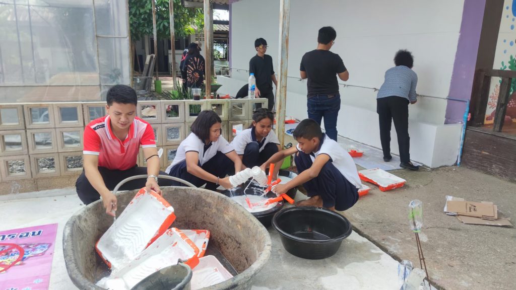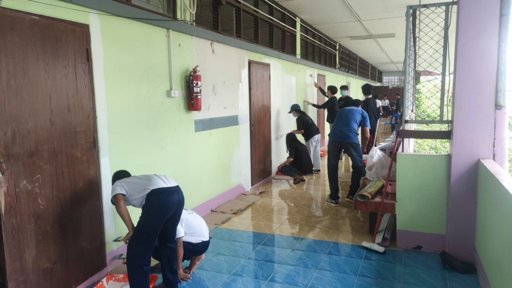 โครงการประโยชน์เพื่อเพื่อนมนุษย์ 27 ม.ค.,2566 adminใส่ความเห็น วันศุกร์ที่ ๒๗ มกราคม ๒๕๖๖ นำโดยนายโอภาส บุญรอง ผู้อำนวยการโรงเรียนวัดป่าขาด พร้อมด้วยคณะครู บุคลากร และนักเรียนโรงเรียนวัดป่าขาด ขอบพระคุณ คณาจารย์ นักศึกษา สาขาวิชาวิศวกรรมเคมี คณะวิศวกรรมศาสตร์มหาวิทยาลัยสงขลานครินทร์ ที่ได้มอบโอกาสให้โรงเรียนวัดป่าขาดเป็นพื้นที่ในการพัฒนาตามโครงการประโยชน์เพื่อเพื่อนมนุษย์ โดยการทาสีอาคารเรียนและพัฒนาพื้นในบริเวณต่างๆของโรงเรียน ซึ่งได้รับการสนับสนุนสีและอุปกรณ์ทาสีจากบริษัท ปตท.สผ.เอนเนอร์ยี่ ตีเวลลอปเมนท์จำกัด เป็นผู้สนับสนุนหลัก ซึ่งในการนี้ทางโรงเรียนวัดป่าขาดได้รับความร่วมมือ ในการจัดเตรียมพื้นที่และร่วมดำเนินกิจกรรมจากหน่วยงานต่างๆ โดยมีคณะกรรมการสถานศึกษา เจ้าหน้าที่จากองค์การบริหารส่วนตำบลป่าขาด โรงพยาบาลส่งเสริมสุขภาพตำบลป่าขาด สถานีตำรวจภูธรปากรอ รวมถึงตัวแทนชุมชนในทุกหมู่บ้านของตำบลป่าขาด ทางโรงเรียนวัดป่าขาดขอขอบพระคุณทุกหน่วยที่ได้มอบโอกาสและร่วมมือพัฒนาโรงเรียนวัดป่าขาดให้มีบรรยากาศที่ดีเหมาะสมกับการจัดการเรียนการสอนมากยิ่งขึ้น