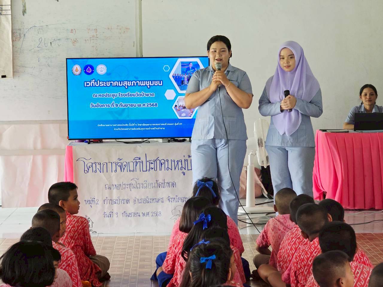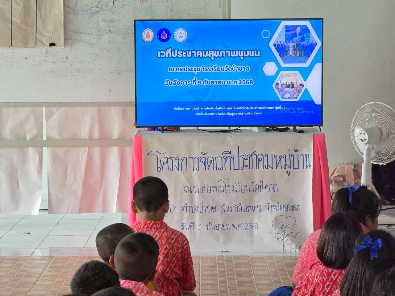 โครงการจัดเวทีประชาคมหมู่บ้าน 10 ก.ย.,2568 adminใส่ความเห็น วันที่ 9 กันยายน 2568 นายโอภาส บุญรอง ผู้อำนวยการโรงเรียนวัดป่าขาด พร้อมด้วยตัวแทนครู และนักเรียนโรงเรียนวัดป่าขาด เข้าร่วมโครงการจัดเวทีประชาคมหมู่บ้าน โดยนักศึกษาวิทยาลัยพยาบาลบรมราชชนนี สงขลา ณ หอประชุมโรงเรียนวัดป่าขาด